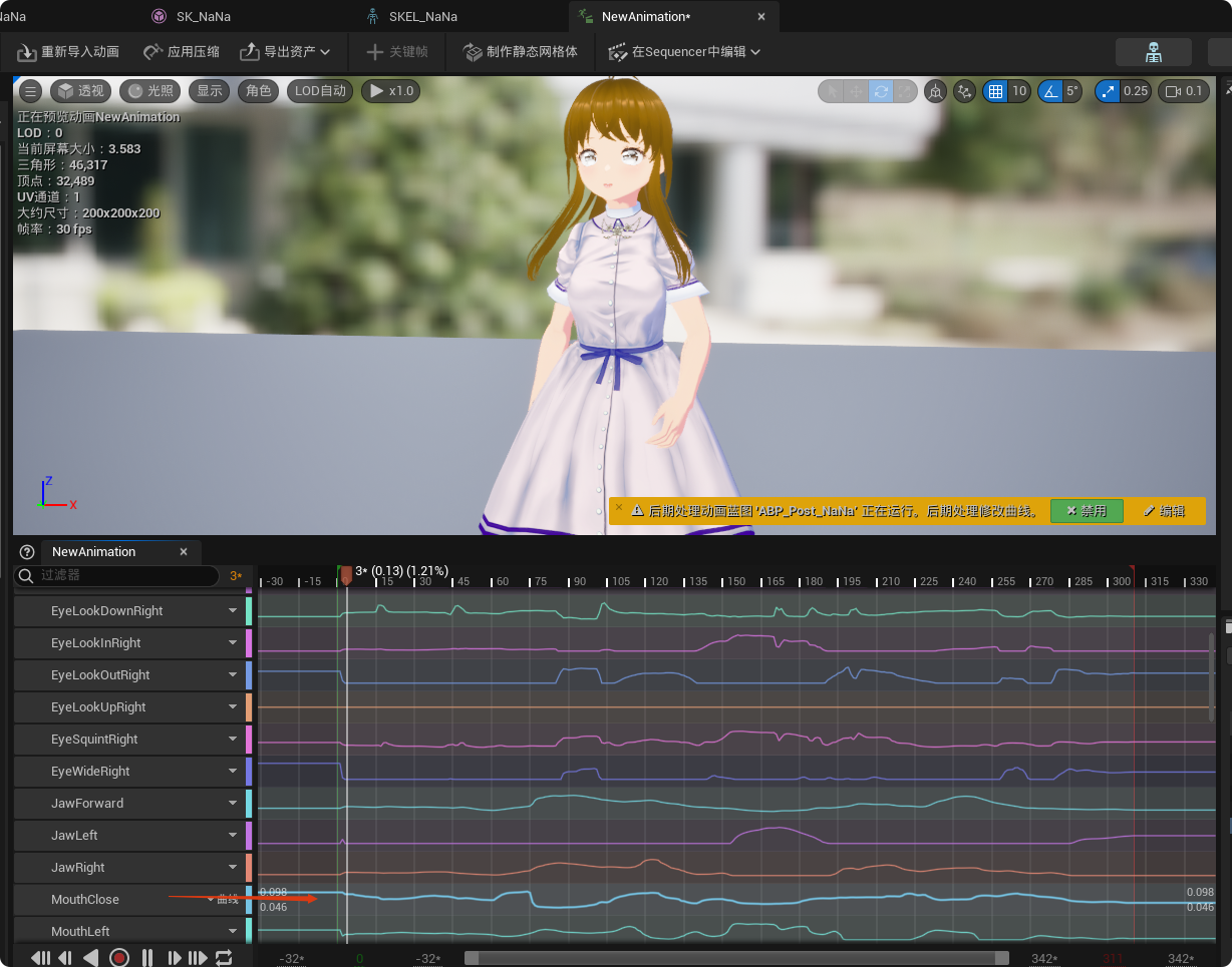 此时我们就能在动画蓝图的预览窗口中看到角色的面部表情会跟随我们面部变化而变化