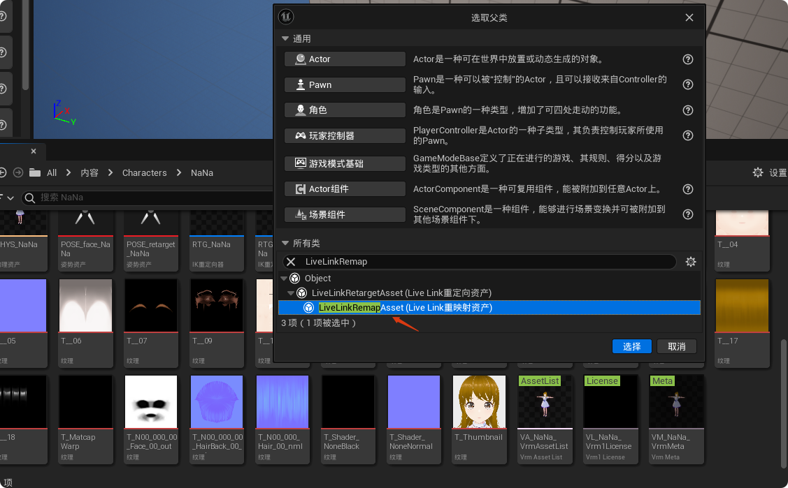 添加一个蓝图,父类为"LiveLinkRemapAssert"