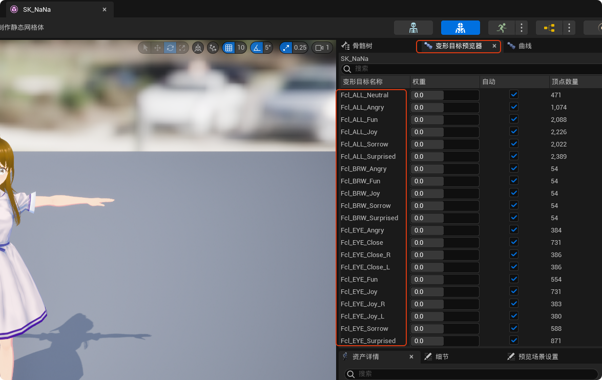 注意:这些通常直接驱动骨骼,不需要重定向到 Morph Target(变形目标)。