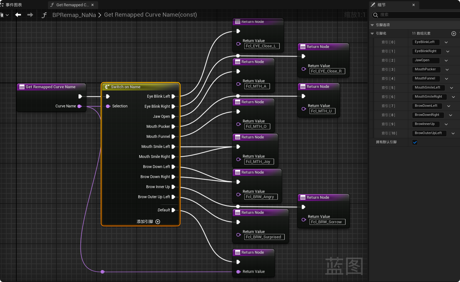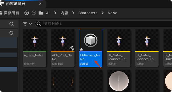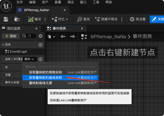 打开"BPRemap_NaNa",重载"获取重映射的曲线名称"
