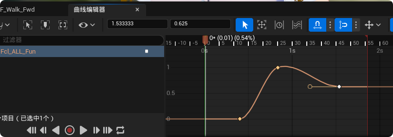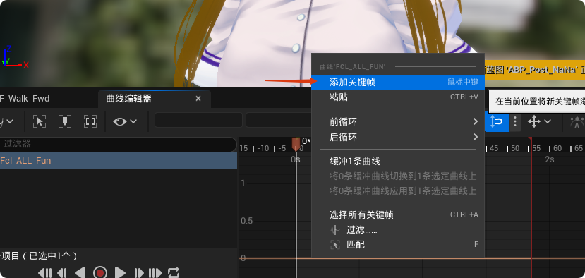 双击该曲线进入曲线编辑器,然后添加关键帧