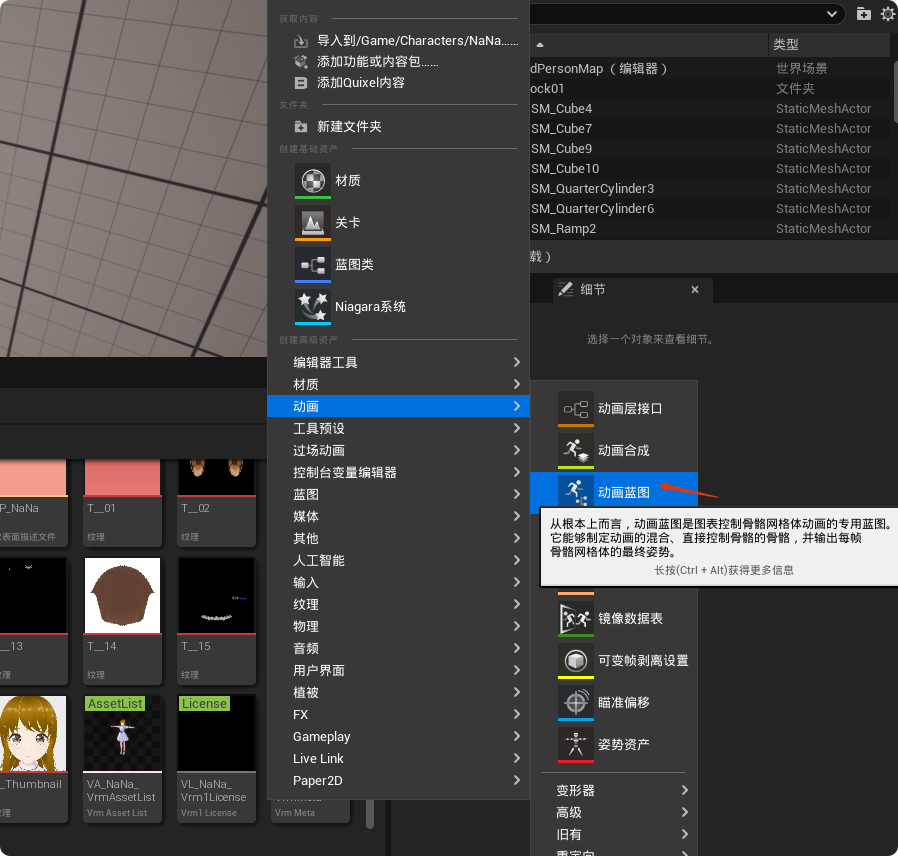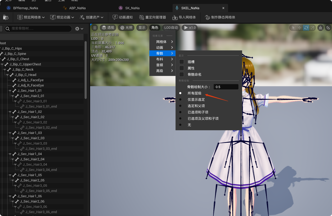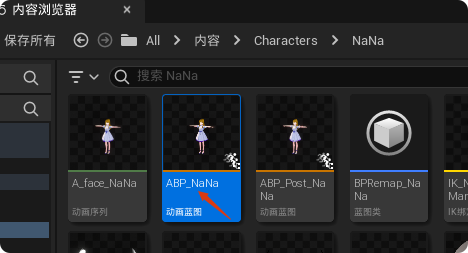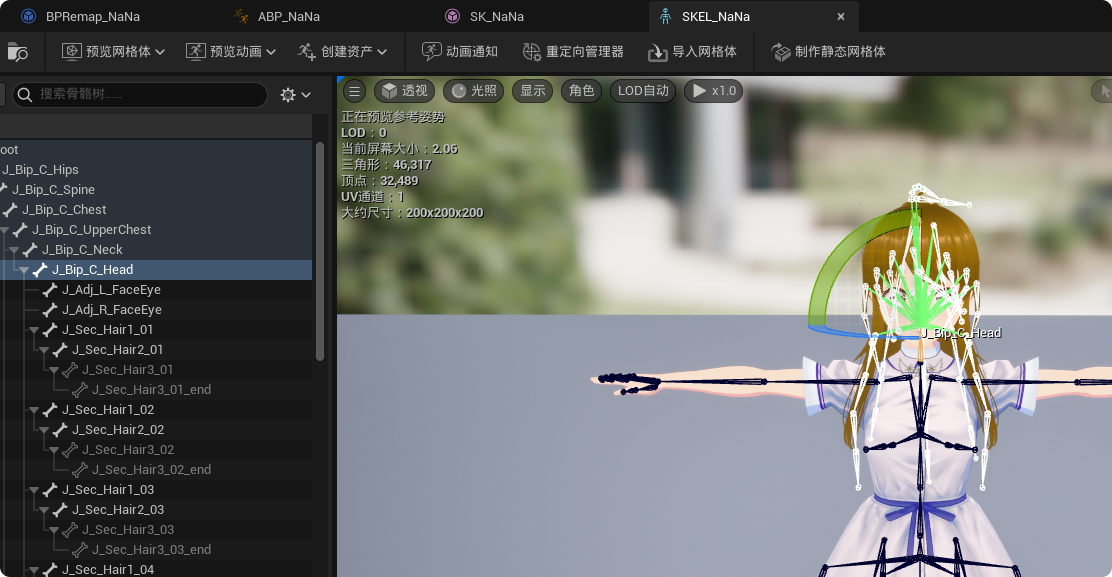 "重定向资产"设置为刚制作的"BPRemap_NaNa"