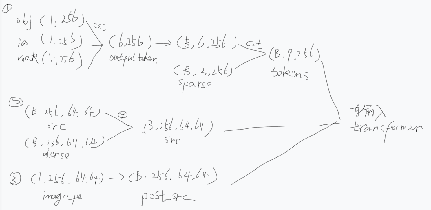 [# sparse_embeddings: torch.Size([1, 3, 256]) output_tokens = output_tokens.unsqueeze(0).expand( sparse_prompt_embeddings.size(0), -1, -1 ) # output_tokens: torch.Size([1, 6, 256]) 这什么意思?](# sparse_embeddings: torch.Size([1, 3, 256]) output_tokens = output_tokens.unsqueeze(0).expand( sparse_prompt_embeddings.size(0), -1, -1 ) # output_tokens: torch.Size([1, 6, 256]) 这什么意思?)