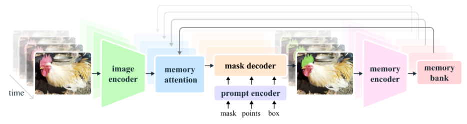 输出多组或单组掩膜 logits、IoU 估计、对象指针等。