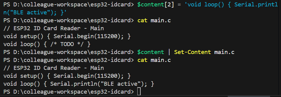 但是我这个在powershell中,Set-Content 默认使用 UTF-16 LE(带 BOM)编码 写入文件这种编码在文件开头会插入不可见的字节(BOM) Git 会误判为"二进制文件",拒绝在二进制文件中插入冲突标记,你也可以自己重新复制粘贴到记事本改一下编码另存为UTF-8编码的程序,然后重新push到远程仓库,这里由于发生的冲突比较简单,我就直接手动编辑了