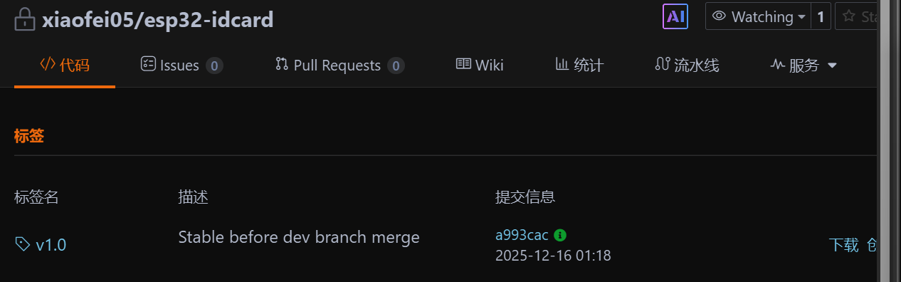然后我们就可以看到在这个仓库中多了个标签,我们也可以下载这个版本