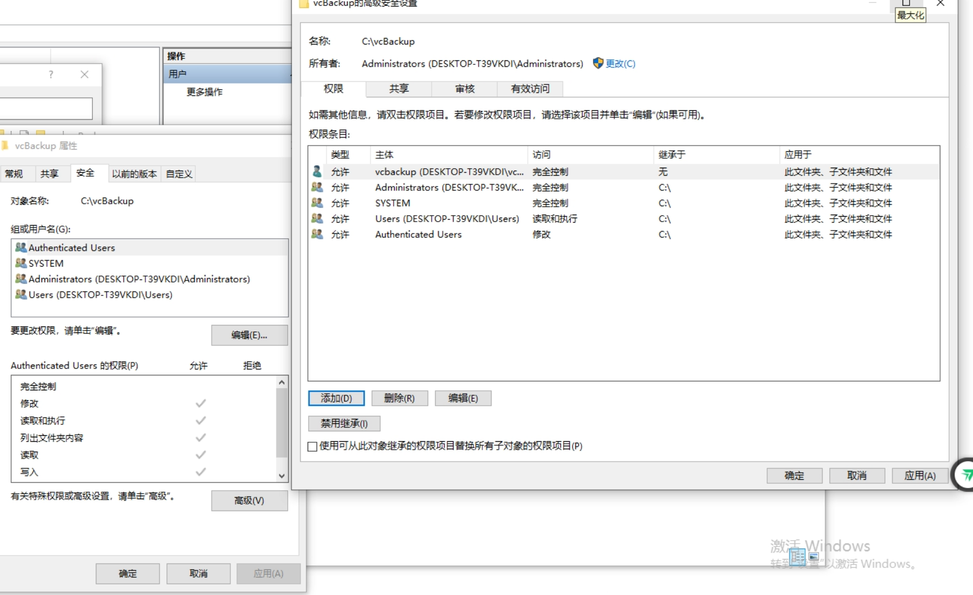 检查一下NTFS是否有权限,如果没有添加vcbackup的NTFS权限
