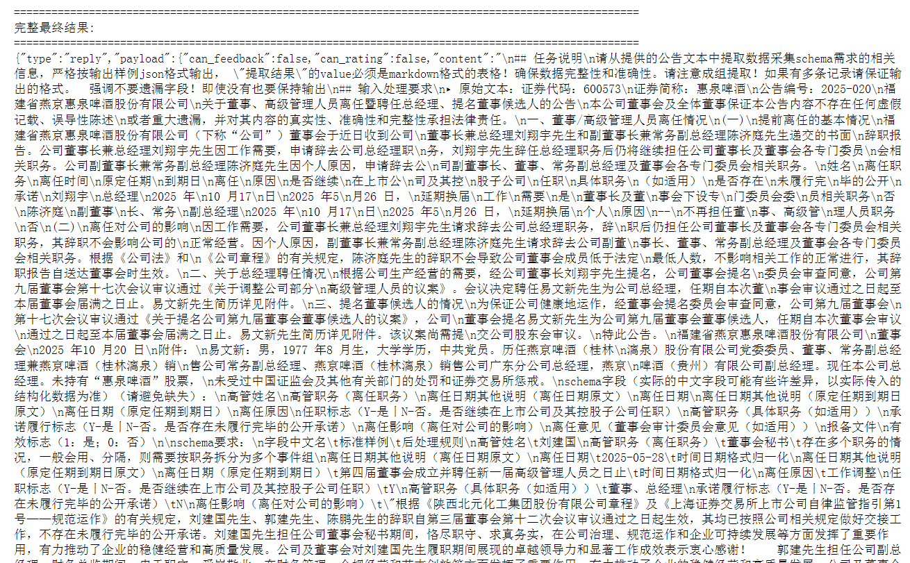 print(f"流式数据片段: {line}") # 打印流式过程数据