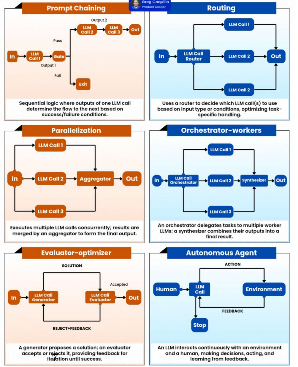 AWS专家Greg Coquillo提出的"MASTERING LLM ARCHITECTURES 6 CORE ORCHESTRATION PATTERNS"(即智能体工作流的六大核心编排模式),旨在为设计和构建复杂的大语言模型(LLM)应用提供系统化的架构蓝图。这些模式并非孤立存在,而是可以像"乐高积木"一样组合使用,以应对不同的业务场景。