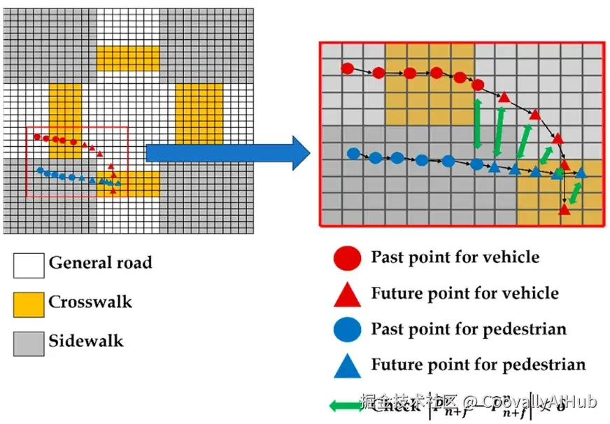 以自动驾驶汽车为例,碰撞检查系统会比较附近物体(如汽车、行人、骑行者)的未来轨迹。如果两条预测路径重叠或危险地接近,系统会将该情况标记为潜在的车辆碰撞。为了理解碰撞风险有多紧急,系统还会计算一个称为"碰撞时间"的值。