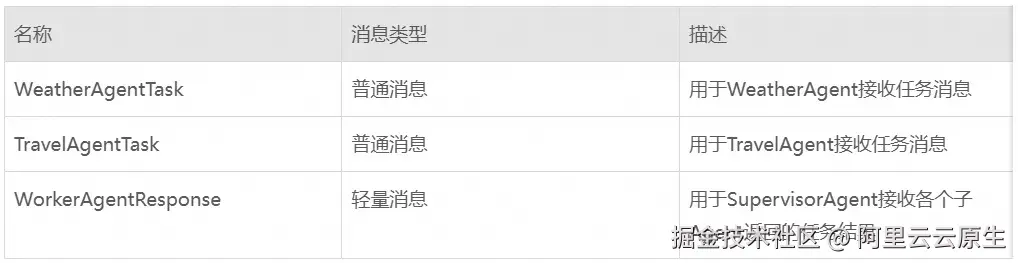 b. WeatherAgent 监听到上述消息,执行天气查询,并将结果发往消息队列。