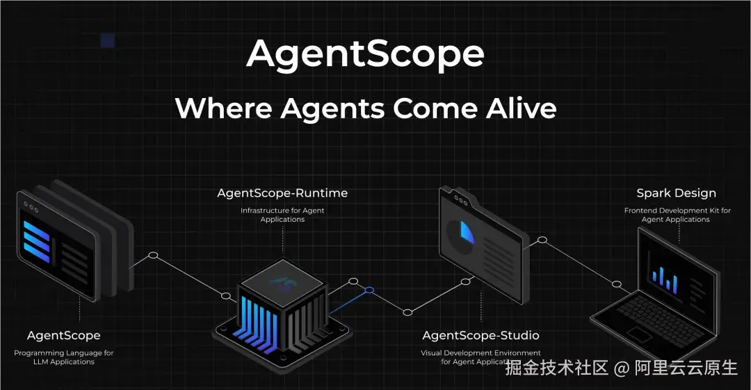 AgentScope 是阿里巴巴继 AI 模型社区 ModelScope 后,在 Agent 领域的又一战略级开源力作。它以"开发者为中心",专注于提供智能体开发的开源框架,为构建复杂的多智能体应用提供了从设计、开发到调试的全套解决方案。它具备以下核心优势: