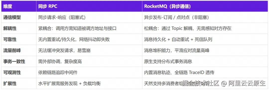 3.3 同步 RPC 与 RocketMQ 异步通信的对比