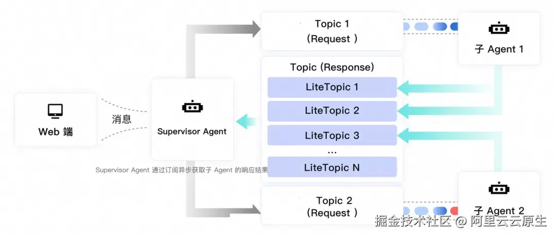 本文将为您介绍 Apache RocketMQ 全新推出的轻量级通信模型 LiteTopic ,如何在 AI 应用场景中有效简化系统架构、提升稳定性与可靠性,并结合 A2A(Agent-to-Agent)协议与阿里巴巴 AgentScope 框架的生产实践案例,深入剖析面向智能体通信的落地实践与技术实现。
