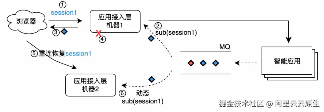 - 动态订阅:新接管的应用接入层节点实例根据 Session ID,动态订阅原 session 对应的 LiteTopic(无需预创建)。