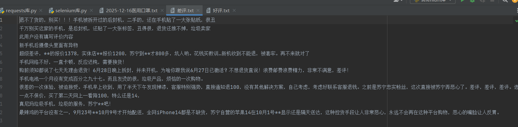 代码是现在苏宁易购首页搜索医用口罩,再进行任务要求