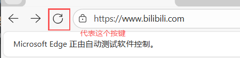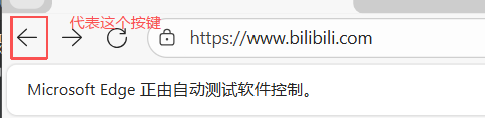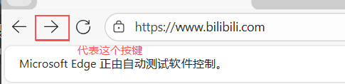 这个代码实现的是先打开bilibili网页,然后打开百度的网页,对bilibili进行覆盖,然后通过a.back()返回到bilibili,此时是哔哩哔哩网页,然后使用a.forword()进入到下一级百度网页,再使用a.refresh()对网页进行刷新