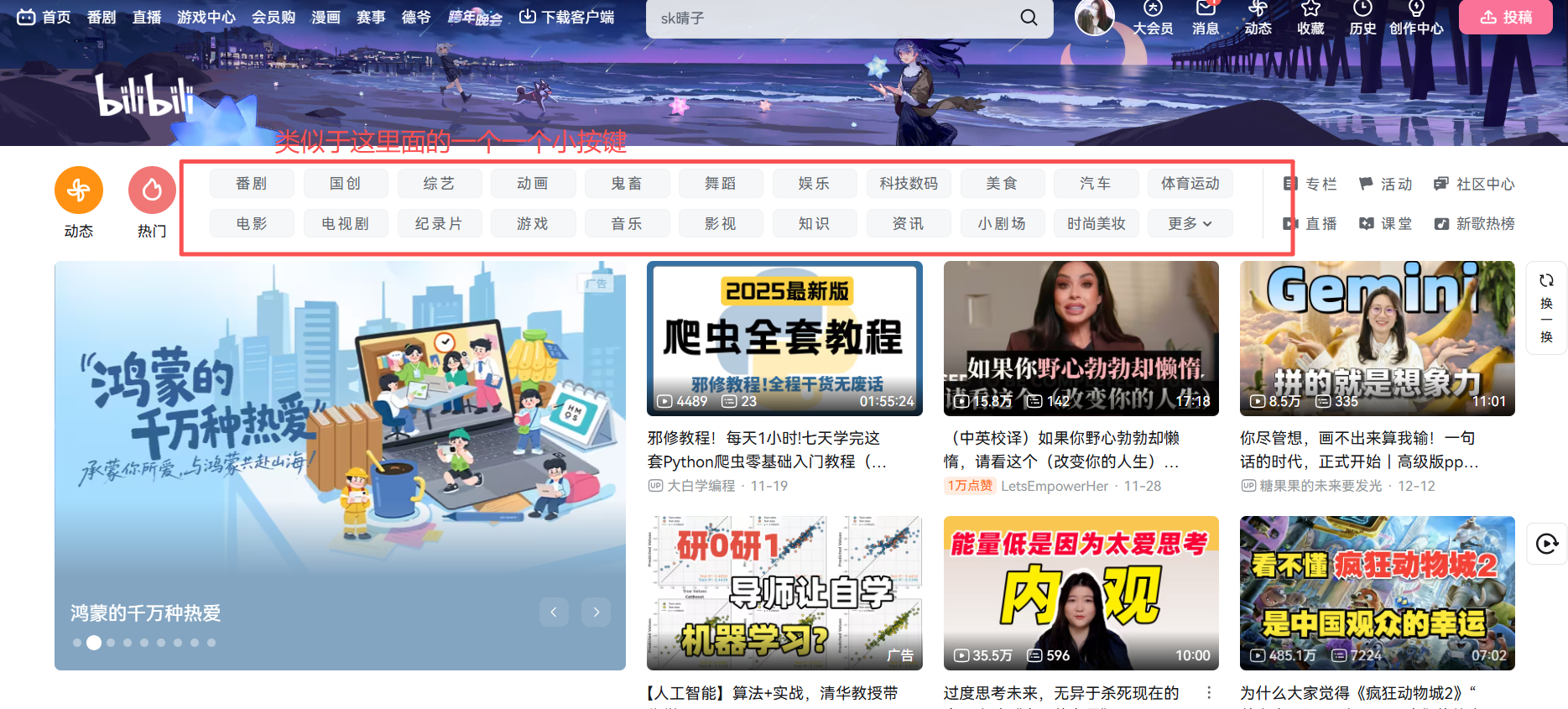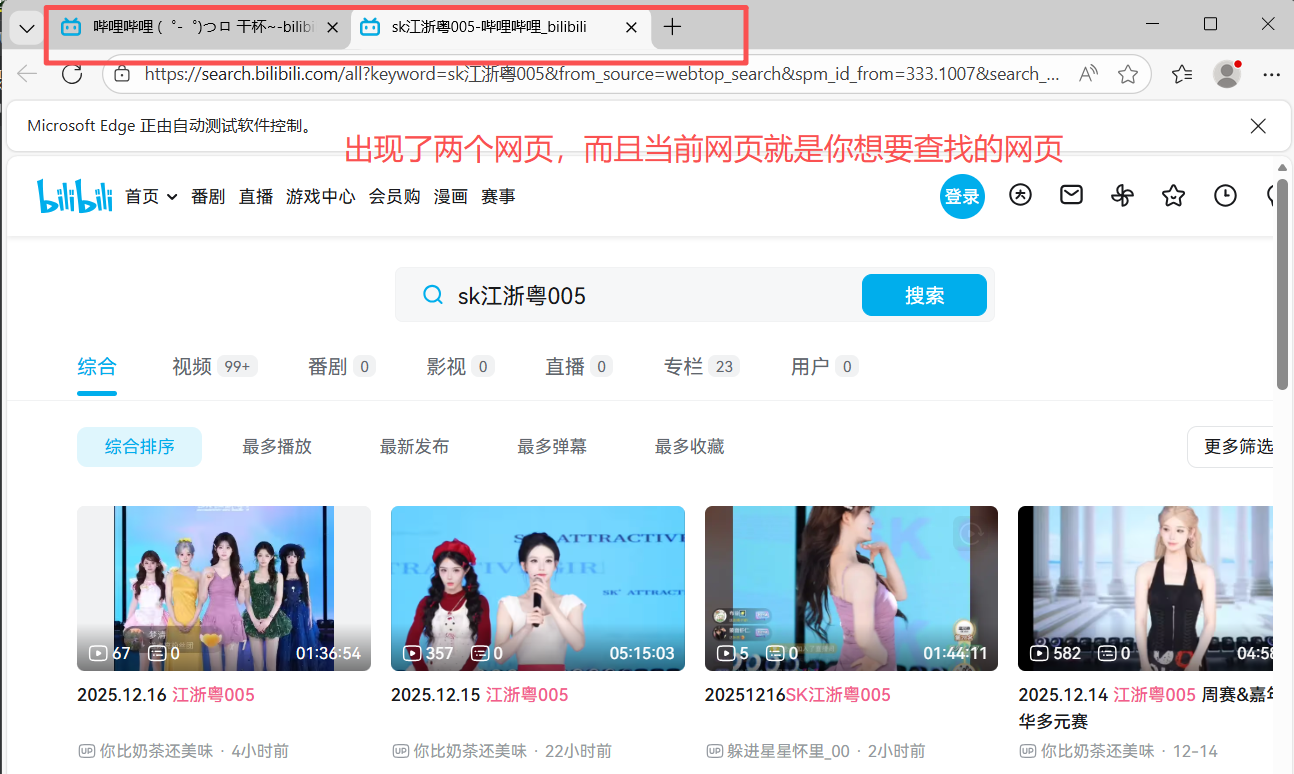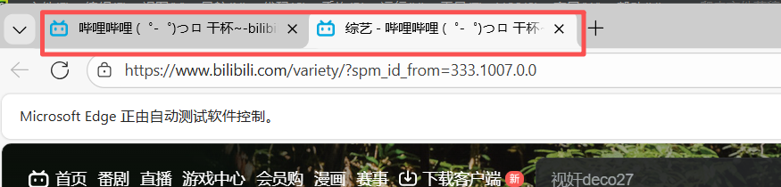 代码主要是实现如果i等于综艺,则点击综艺按键,下面是执行结果,我们可以看到多了一个综艺的网页