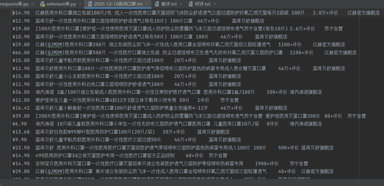 8、项目实现:苏宁易购网站获取医用口罩信息(包括价格、名称、评价数、店铺名称)