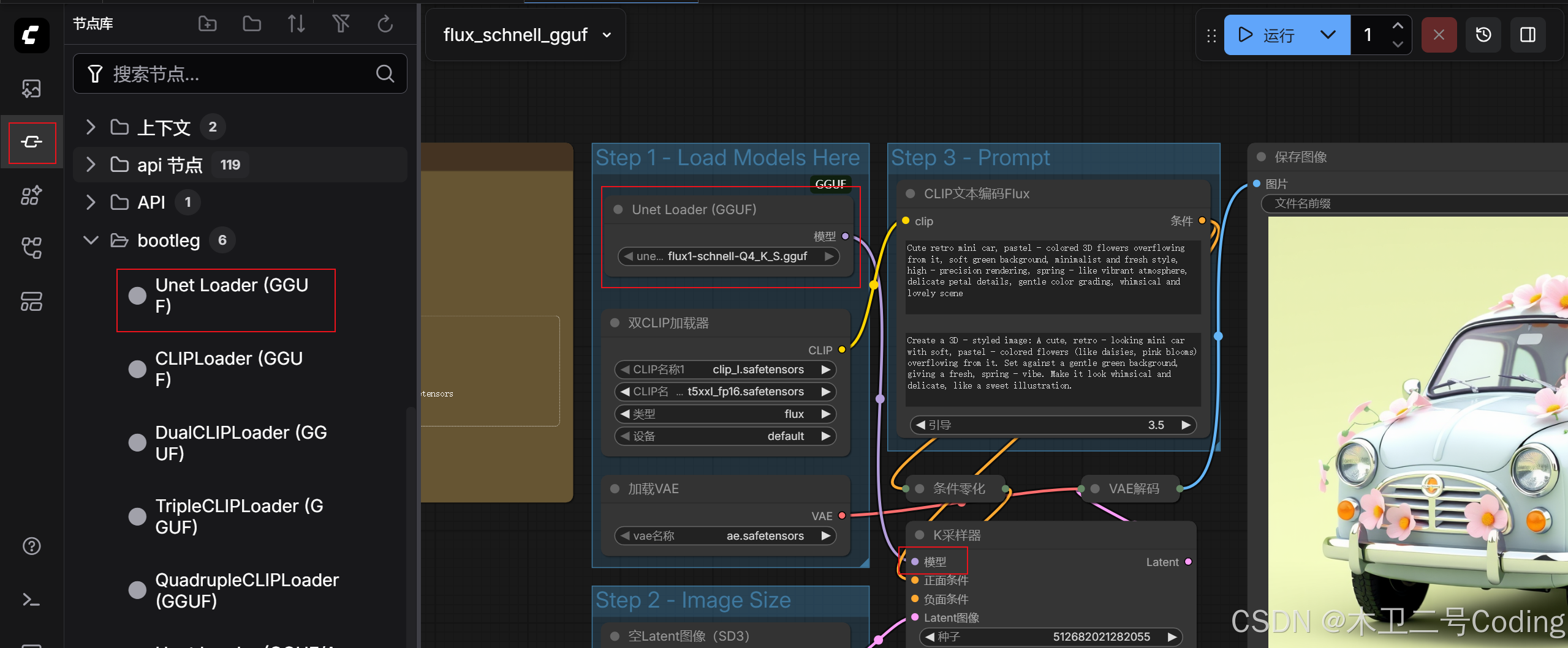 基于ComfyUI的Flux Schnell案例修改模型为GGUF加载器