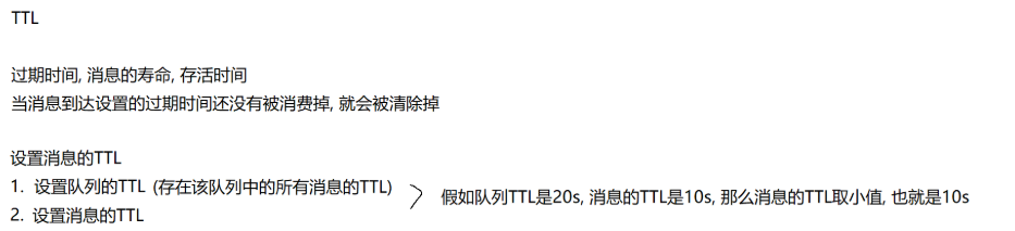 TTL(Time to Live,过期时间),RabbitMQ可以对消息和队列设置TTL。