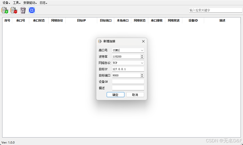 - 功能:新增/删除连接、映射物理端口、清理虚拟串口、查看日志、退出与搜索过滤