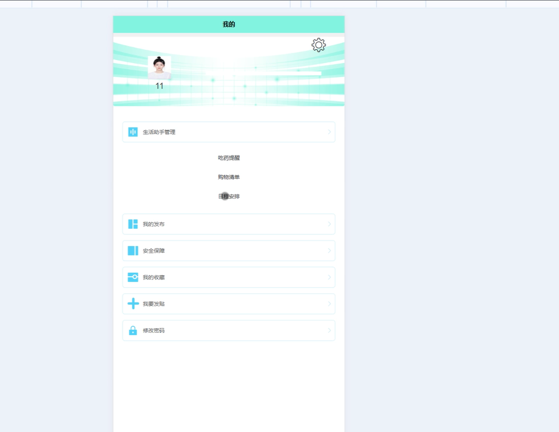 - "健康管理 + 社交互动" 融合:除核心健康服务外,增设 "我的发布" 模块,支持用户分享健康生活、互动交流,形成积极的社区氛围,兼顾老年人健康需求与社交需求;