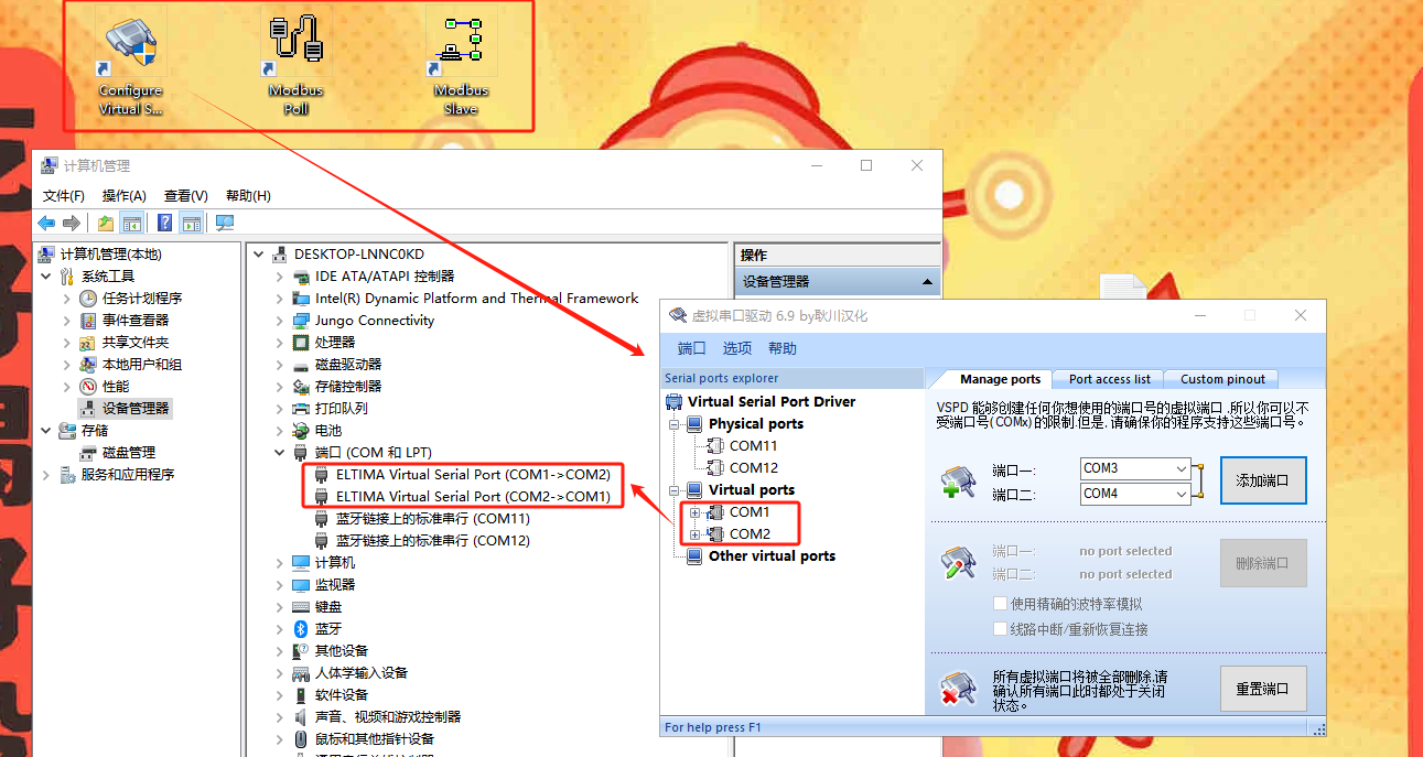 一、先使用虚拟串口工具,配置一对虚拟串口