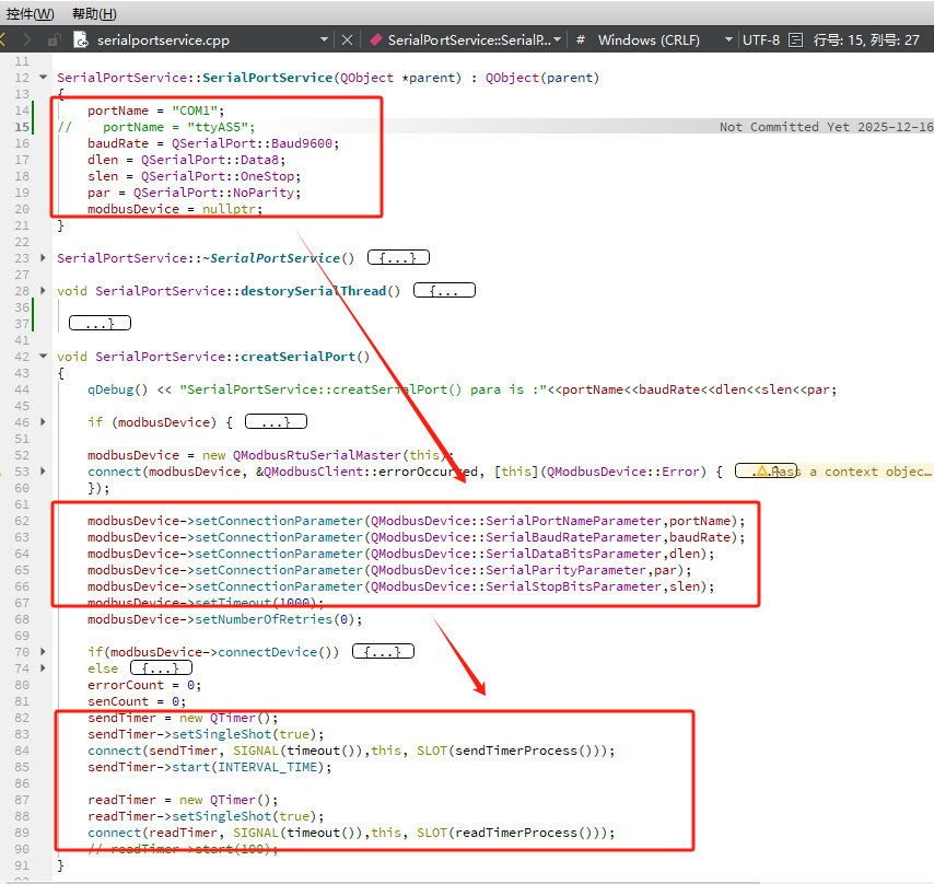 三、代码内配置modbus 主站 参数如下图, 同时设置 发送和读取modbus寄存器的定时器, 定时写入和读取数据