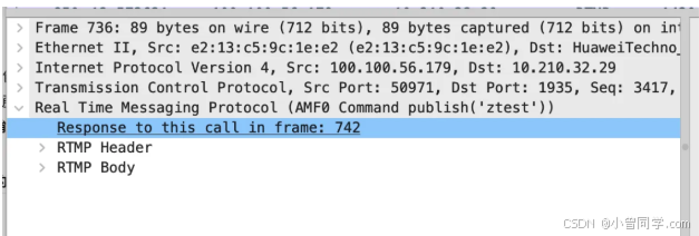 最后,它会继续解析载荷中最内层的实际 RTMP 数据,并为它打上 rtmp 协议的标签。