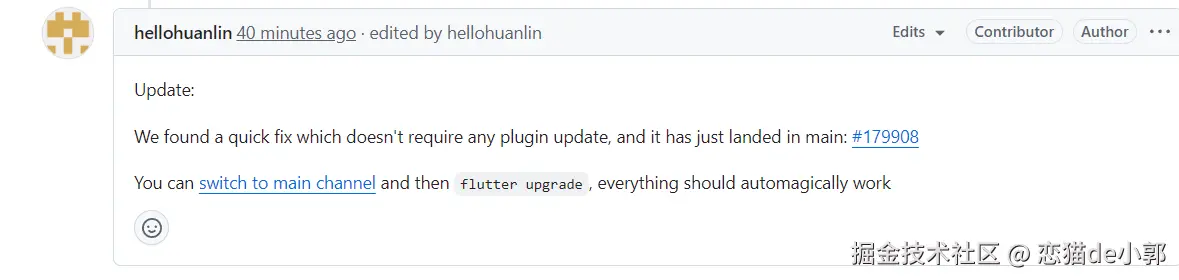 为什么需要这个新的 PR ?因为这是一个无需任何插件更新的快速修复方案,并且也已经合并到了 master :