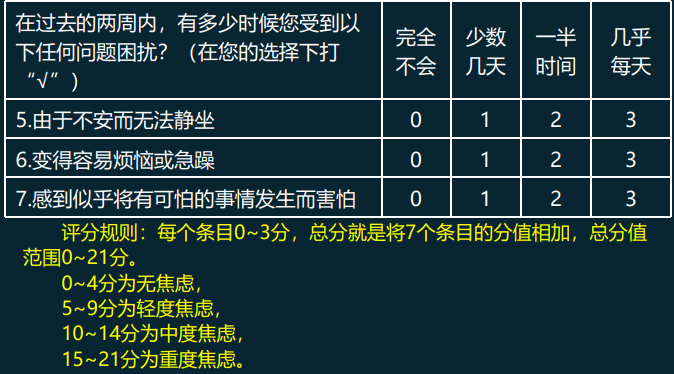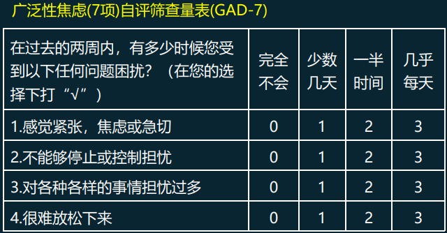 1)自评筛查量表---广泛性焦虑:GAD-7