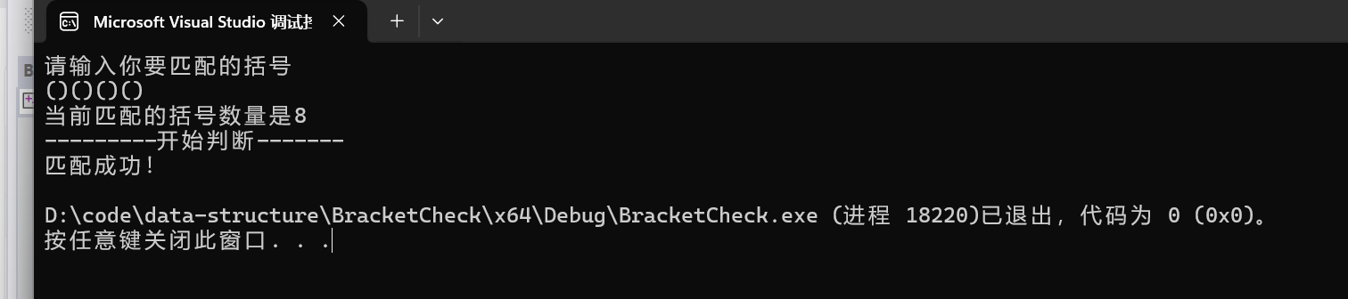 if (BracketCheck(str, len))//Bracketcheck匹配成功会返回true否则返回flase