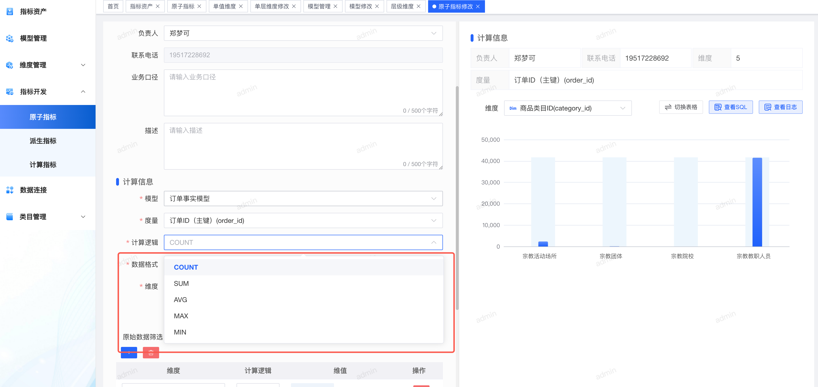 通过原子指标计算逻辑配置,自动生成对应的聚合函数。