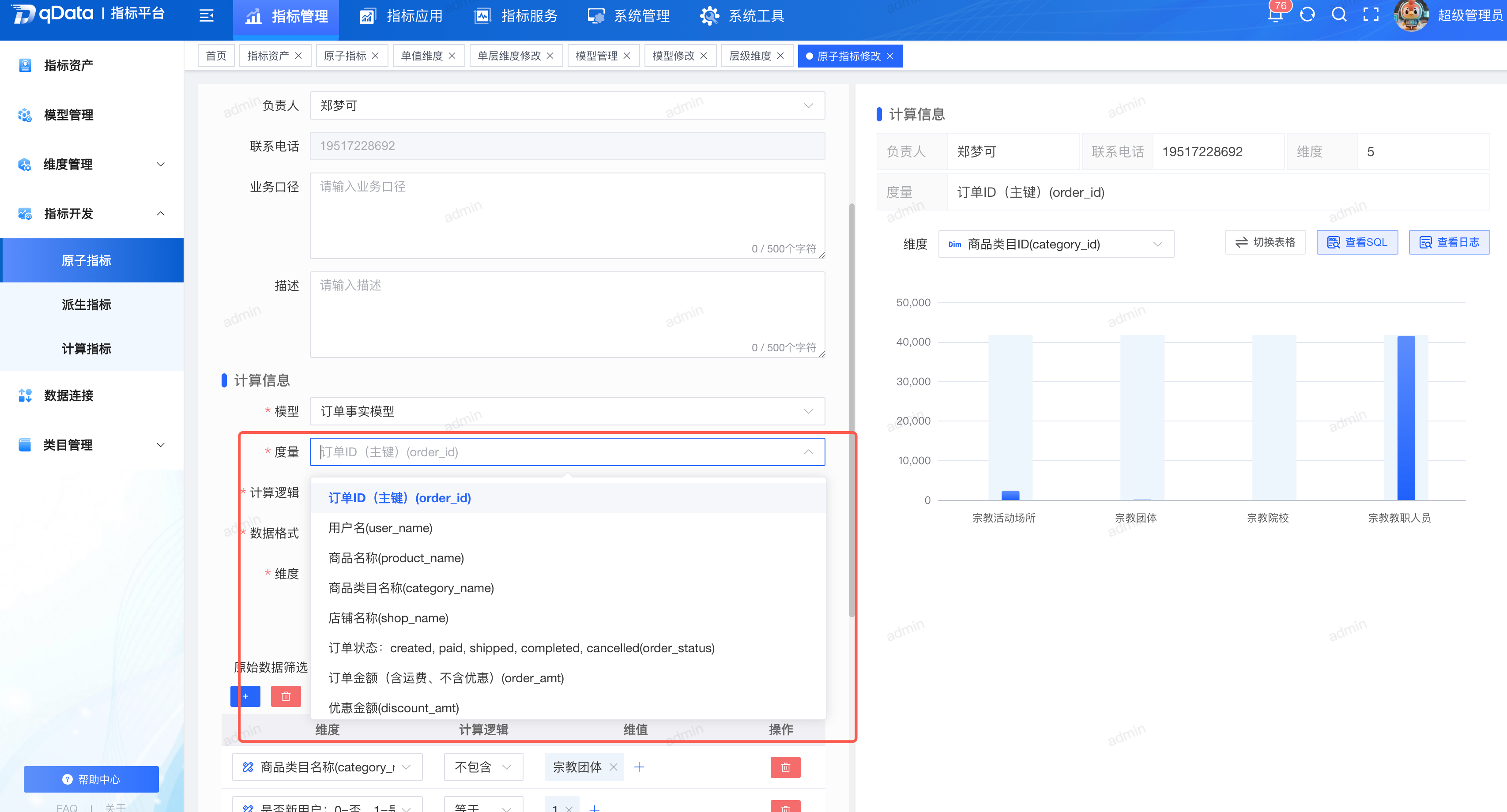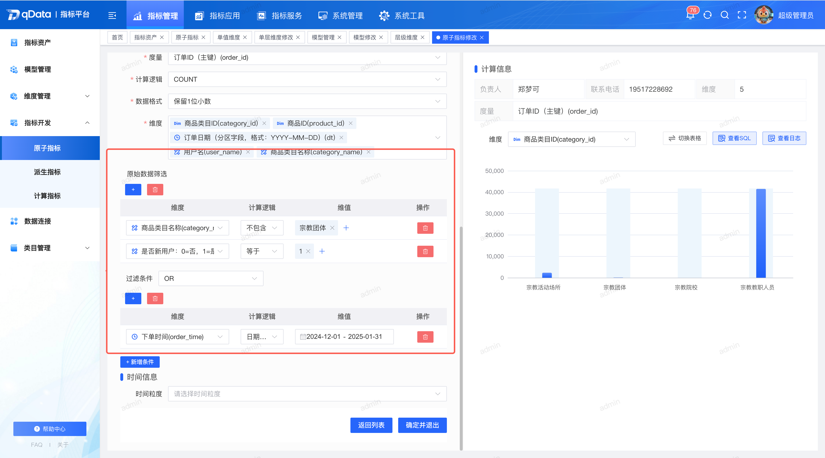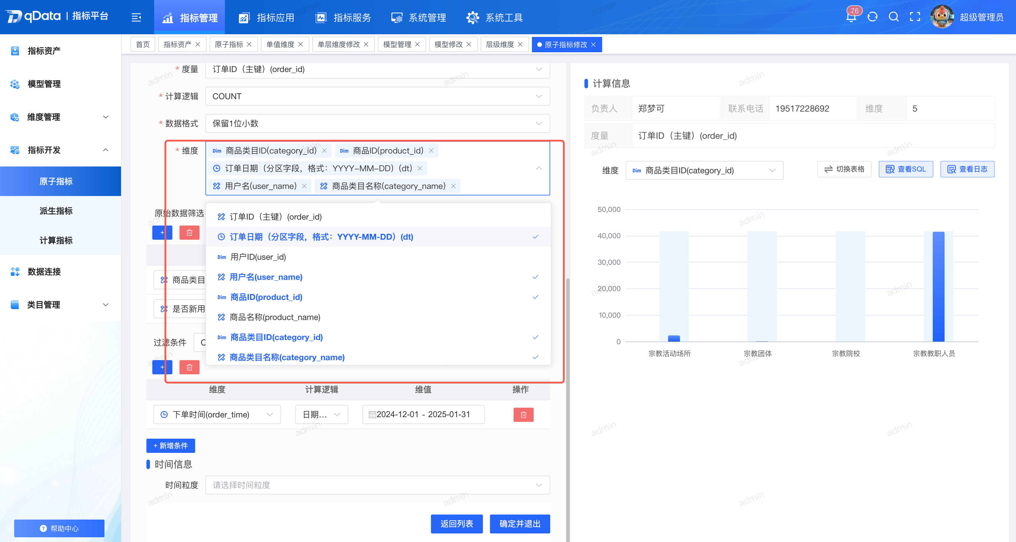 qData 数据中台商业版在产品生态圈中构建了统一的指标平台,通过原子指标作为指标体系的最小计算单元,实现指标的标准化定义、统一计算与可治理管理。