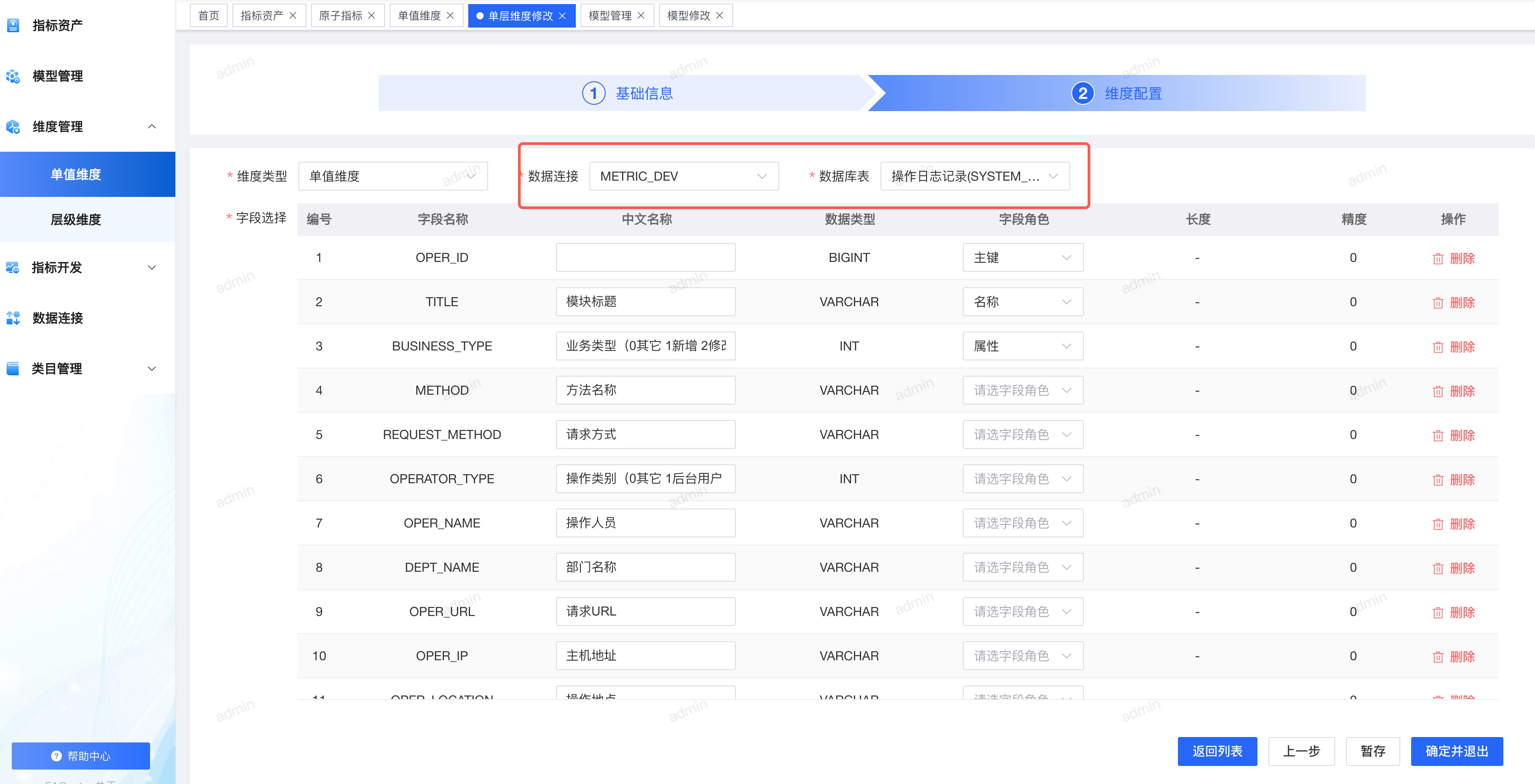 id、维度1主键、维度1主键名称、维度2主键、维度2主键名称、指标代码