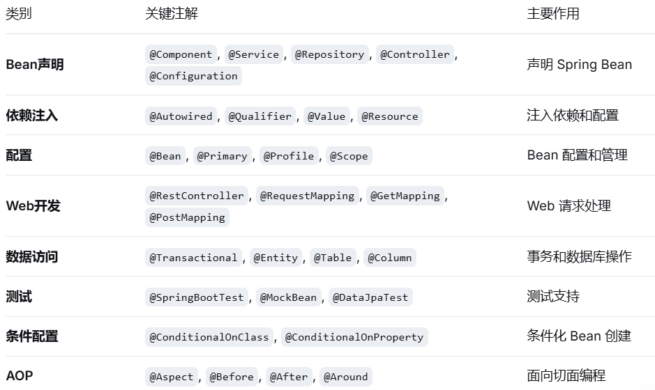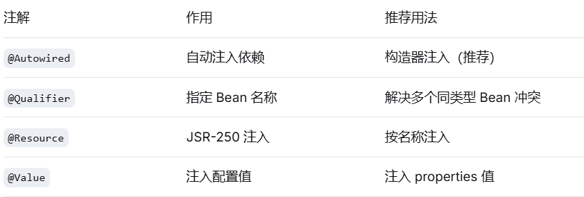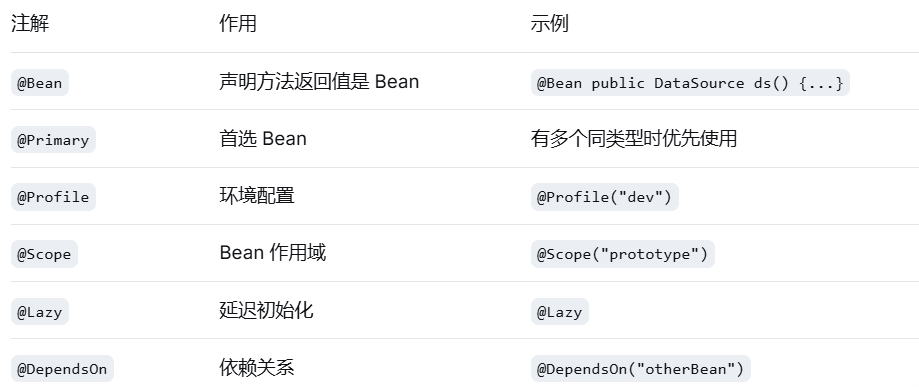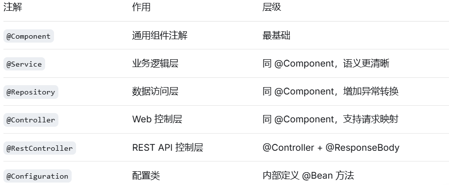 IOC(Inversion of Control,控制反转)容器 是 Spring 的核心,也称为 DI(Dependency Injection,依赖注入)容器。它的主要职责是:①创建对象:管理应用中所有对象(Bean)的生命周期;②维护依赖关系:自动装配对象之间的依赖;③提供配置方式:支持多种配置方式(XML、注解、Java配置)。IoC 容器工作的基础是Bean 的扫描(组件扫描)。