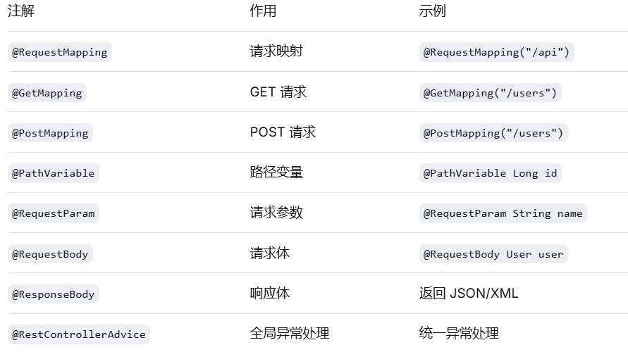 @GetMapping("/{id}") //get请求方法,与RequestMapping映射内容做拼接