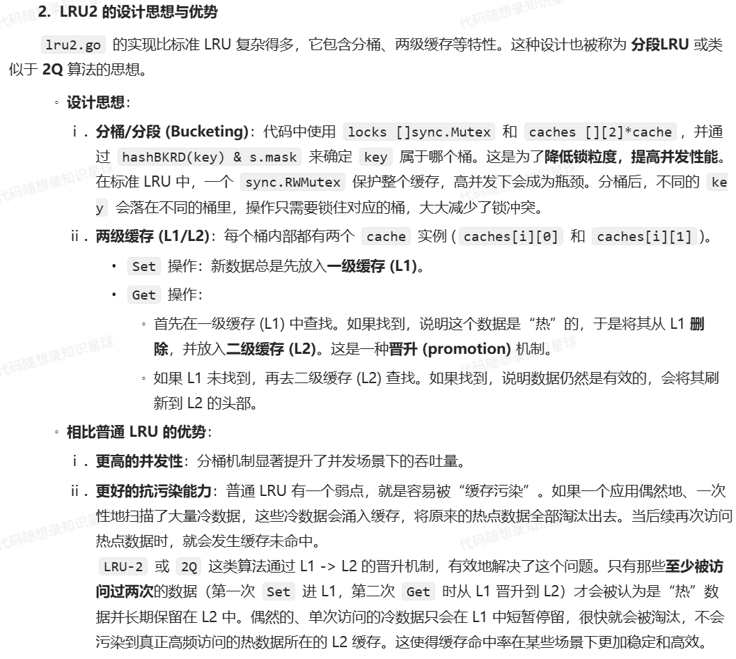 - [8. 请简述 LRU 算法的原理,你这里的 LRU2 相比普通 LRU 有什么优势](#8. 请简述 LRU 算法的原理,你这里的 LRU2 相比普通 LRU 有什么优势)