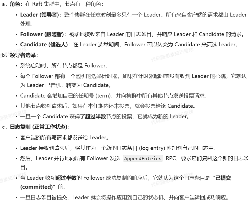 - [9. 使用 etcd 做服务注册时有租约机制,请解释一下租约的作用是什么?如果某个缓存节点突然宕机,整个集群是如何感知到这个变化并调整工作状态的?](#9. 使用 etcd 做服务注册时有租约机制,请解释一下租约的作用是什么?如果某个缓存节点突然宕机,整个集群是如何感知到这个变化并调整工作状态的?)