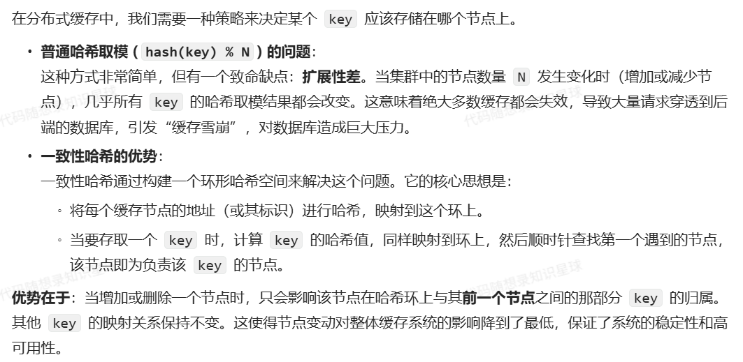 - [4. 项目中为什么选择使用一致性哈希?它相比普通的哈希取模方式有什么优势](#4. 项目中为什么选择使用一致性哈希?它相比普通的哈希取模方式有什么优势)