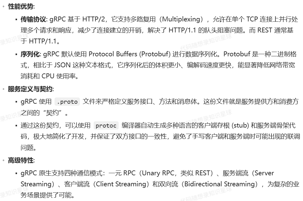 10. 项目选择了 gRPC 作为节点间的通信协议,相比于更常见的 RESTful API,gRPC 和 Protobuf 有哪些优势?