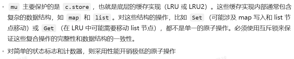 - [11. 缓存的并发安全需要锁或原子操作来保证,解释一下互斥锁 (Mutex) 和原子操作 (Atomic) 的区别,以及它们各自的适用场景](#11. 缓存的并发安全需要锁或原子操作来保证,解释一下互斥锁 (Mutex) 和原子操作 (Atomic) 的区别,以及它们各自的适用场景)