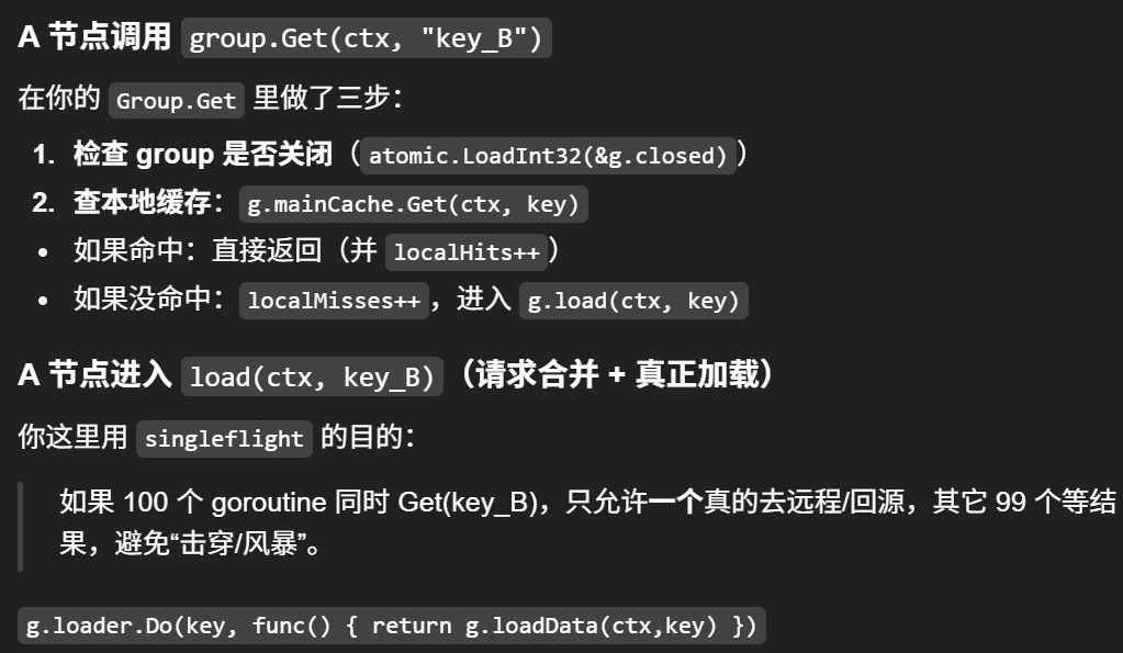 | | | 8) B侧再走一遍 Group.Get(但这次本地会命中)