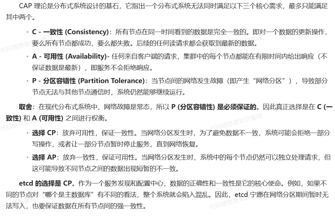 - [12. 谈谈你对 CAP 理论的理解,etcd 是如何做取舍的?](#12. 谈谈你对 CAP 理论的理解,etcd 是如何做取舍的?)