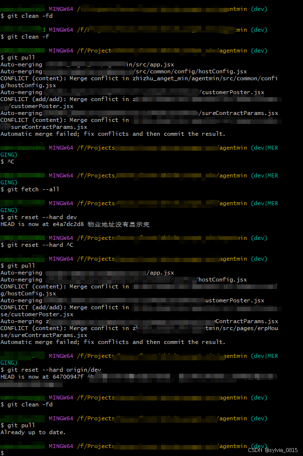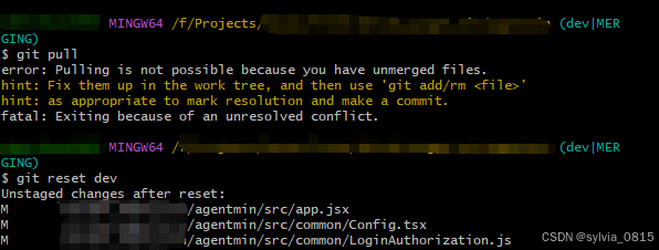 两台电脑代码有差别,pull报错,当前电脑修改可以完全放弃,但是pull提示有代码已经add过,强行pull当前项目变为merge模式。