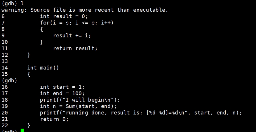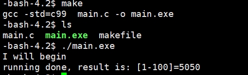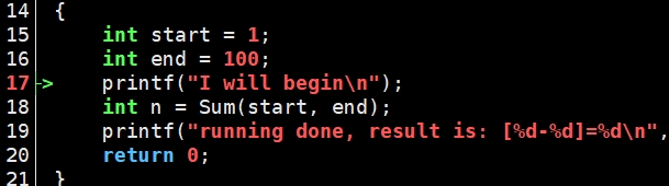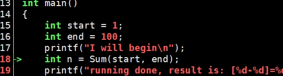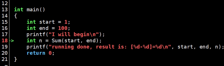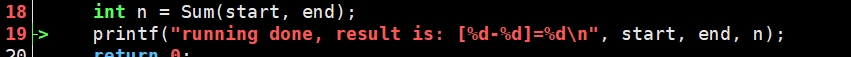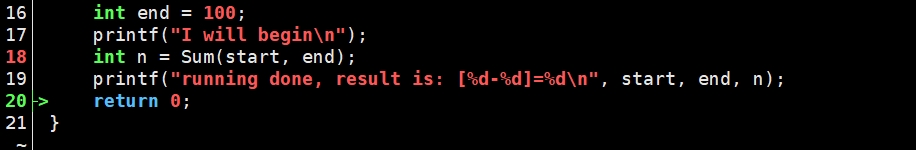 printf("running done, result is: [%d-%d]=%d\n", start, end, n);