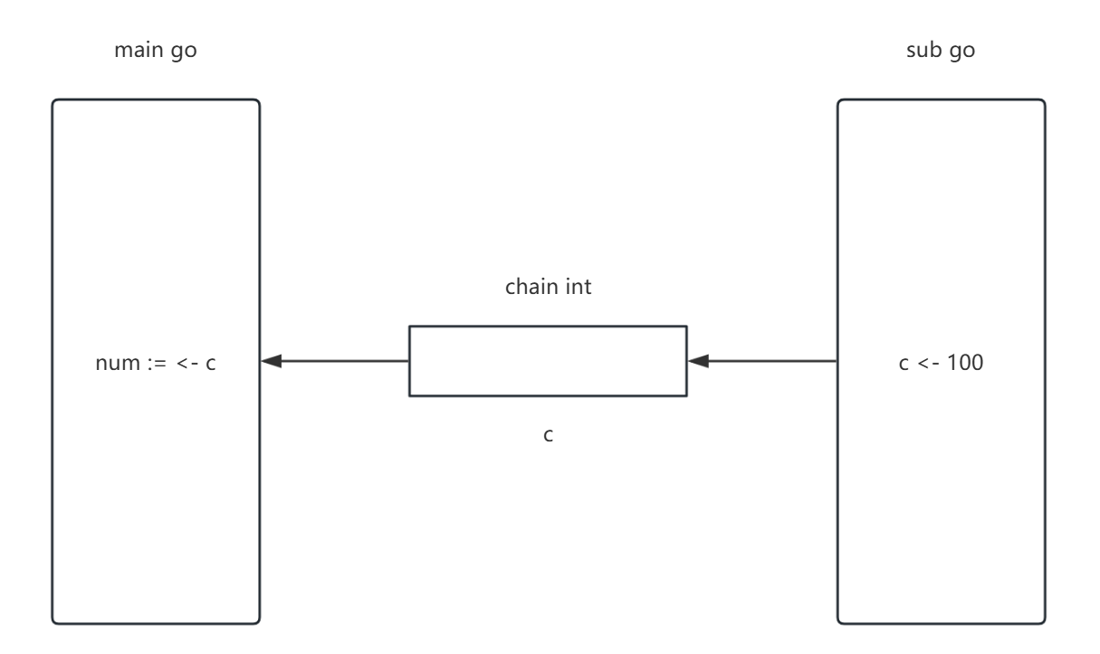 (2)sub go 已经到达 c <- 100,如果 main go 还没有到达 num := <- c,因为此时的管道 c 是无缓冲的,就会对 sub go 进行阻塞。