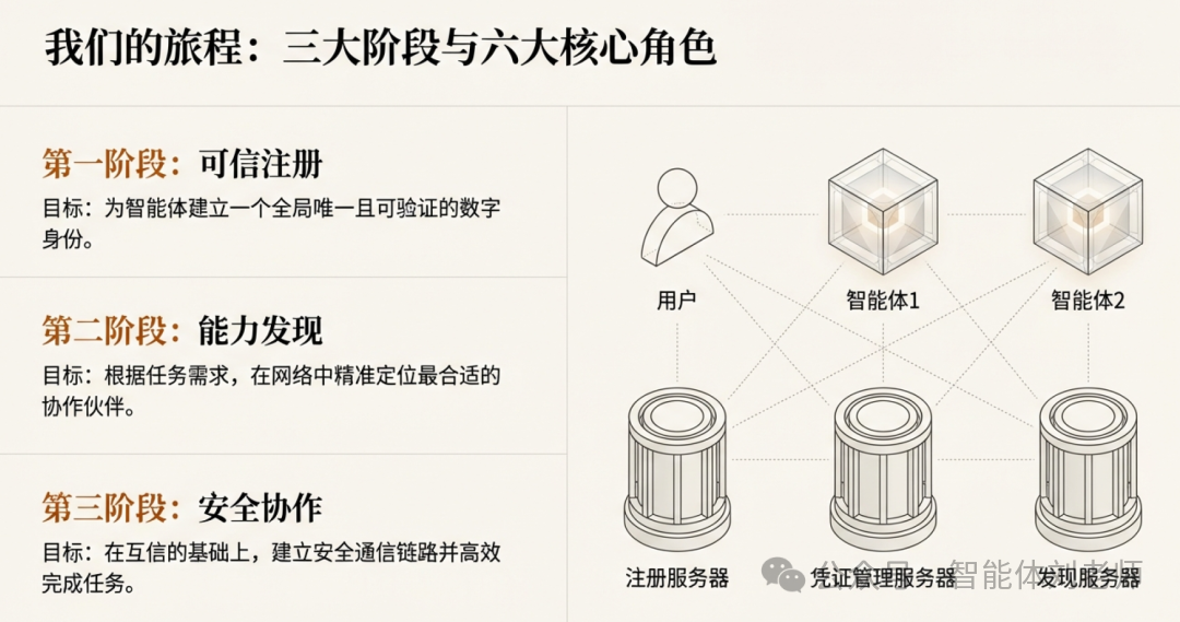 一个完整的智能体互联协作流程,分为以下几个阶段:
