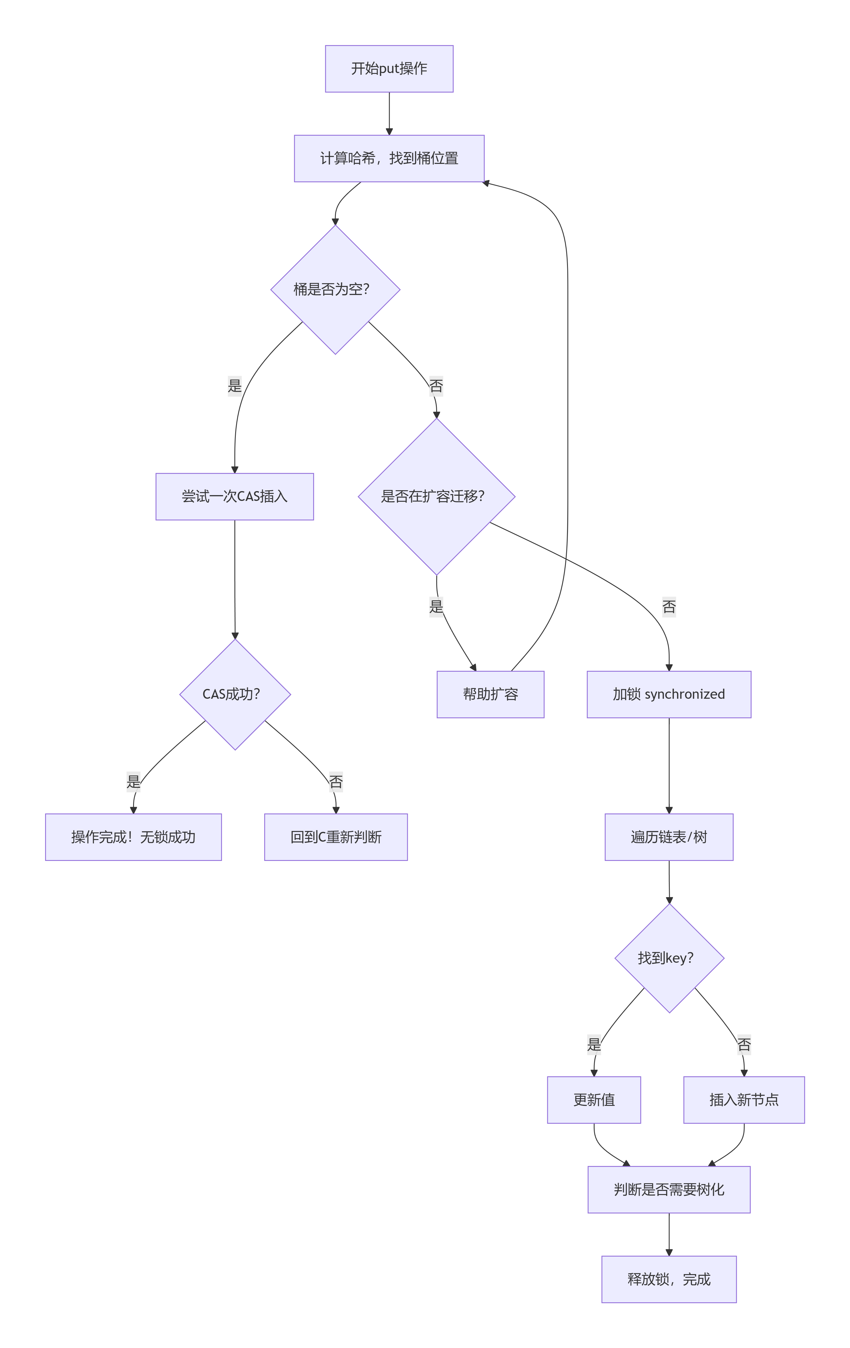 ConcurrentHashMap锁粒度更细(锁住桶或链表头节点),HashTable是全局锁。